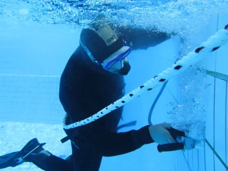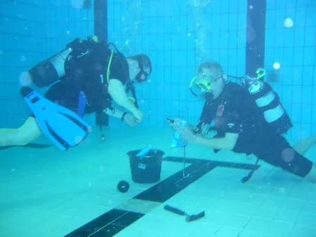 Unterwasserarbeiten mit Spezialklebern in Schwimmbädern.